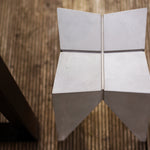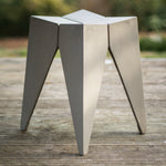 Crafted entirely from fibre concrete with a natural grey finish, its angular, geometric form introduces an edgy, architectural feel. Despite its robust material, the stool maintains a minimalist aesthetic, striking a perfect balance between functionality and artistic expression.