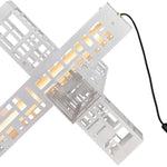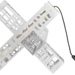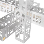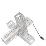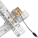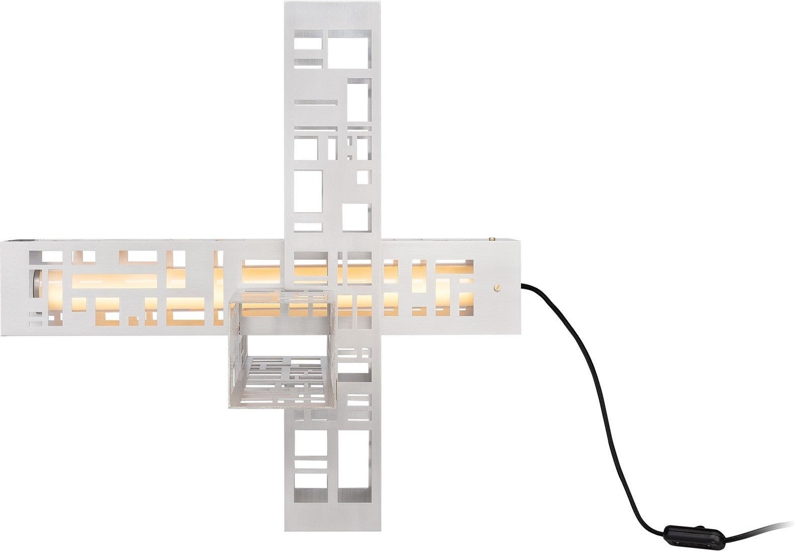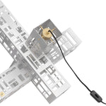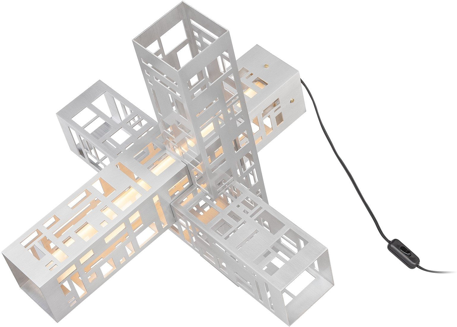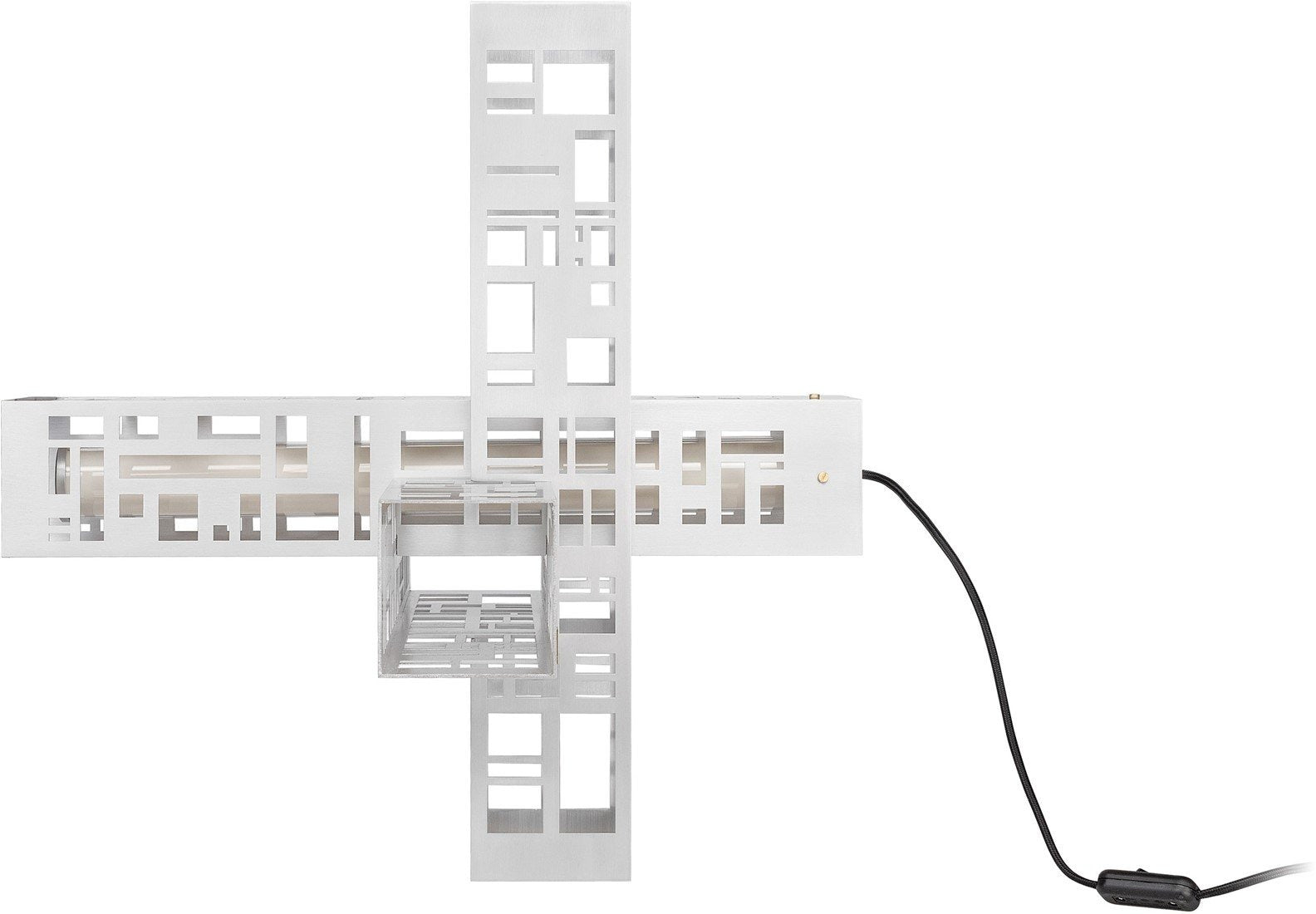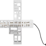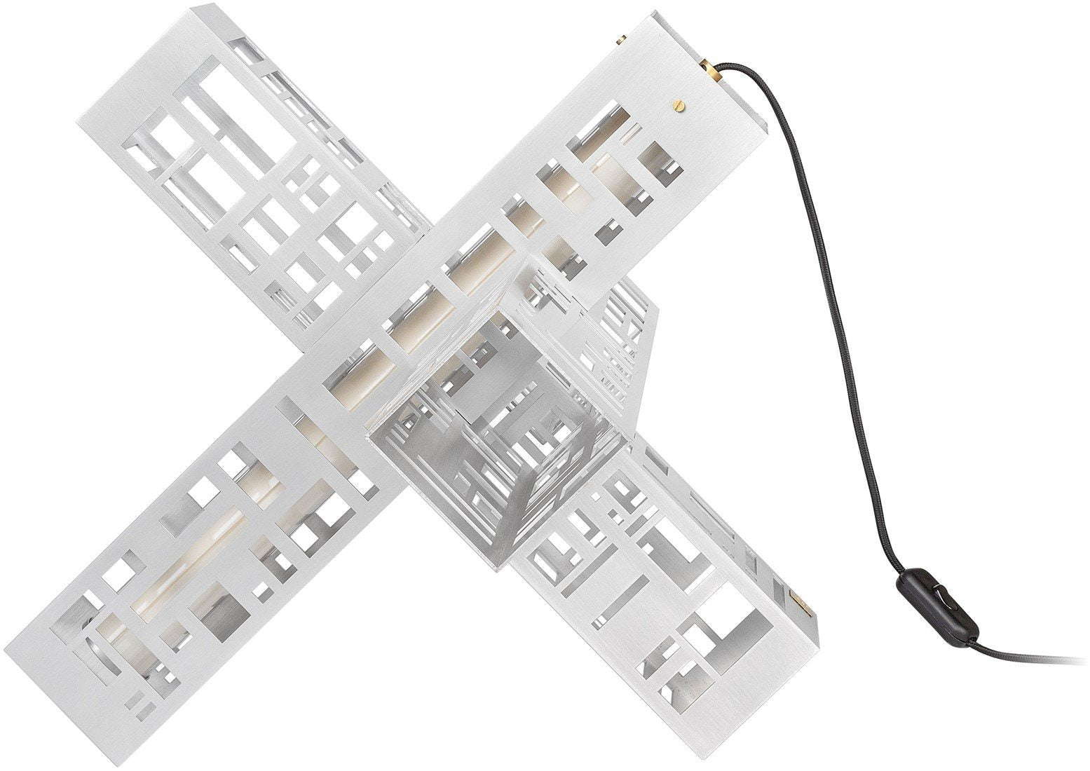 Crafted from solid aluminium with a brushed finish, its intersecting design and lattice-style structure create an architectural feel reminiscent of cutting-edge skyscrapers. An integrated LED strip illuminates through the intricate cut-outs, casting a striking and bright glow that transforms your space.