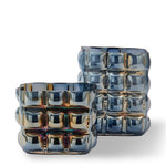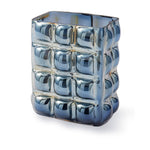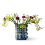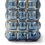 Crafted from 30% blue recycled glass, its bold, three-dimensional design inspired by bubble wrap showcases bulbous orbs that catch the eye from every angle. The lustrous finish shimmers with a subtle rainbow effect, creating an ethereal quality that shifts beautifully with changing light.