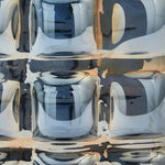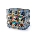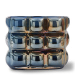 Crafted from 30% blue recycled glass, its bold, three-dimensional design inspired by bubble wrap showcases bulbous orbs that catch the eye from every angle. The lustrous finish shimmers with a subtle rainbow effect, creating an ethereal quality that shifts beautifully with changing light.
