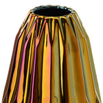 Sculpted from stoneware, the vase's sharp angles and multi-coloured oily glaze make it a captivating focal point in any room. A true conversation starter, this vase presents a futuristic yet timeless appeal that is perfectly complemented by pale floral arrangements. The soft hues of the blooms create a striking contrast, highlighting the bold, unique design of the vase itself.