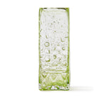 Drawing on the rugged essence of brutalist architecture, this unique vase commands attention with its robust, relief-shaped form. Hand-blown in light green glass, each vase showcases a one-of-a-kind bubble pattern, adding texture and a dash of whimsy. This statement piece doesn't just hold flowers; it breathes life into your living space.