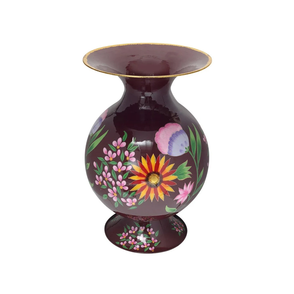 Made from enamel and finished with a golden metallic trim, this statement piece features a beautifully intricate floral design that brings charm and character to your décor. The rich mix of colours set against a deep background adds depth and visual interest, making it perfect as a focal point in any room of the house.
