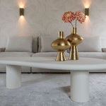 Perched on three cylindrical legs, this striking piece showcases the allure of minimalist design, further enhanced by a distinctive light eco plaster finish. Its understated silhouette allows it to shine in any setting, whether it's a minimalist living room or an eclectic conservatory. It serves as a beautiful focal point, anchoring the design of your main seating area with ease.