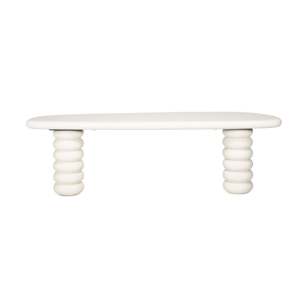 Crafted from wood with a light eco plaster finish, this TV unit showcases a whimsically shaped top supported by two playful, twisted legs. Its minimalistic design, offset with a touch of fun, lends character to your space while serving as the ideal platform for your TV. Any remaining space can be utilised for displaying photo frames, ornaments, or floral arrangements, making it a versatile addition to any living room or hallway.