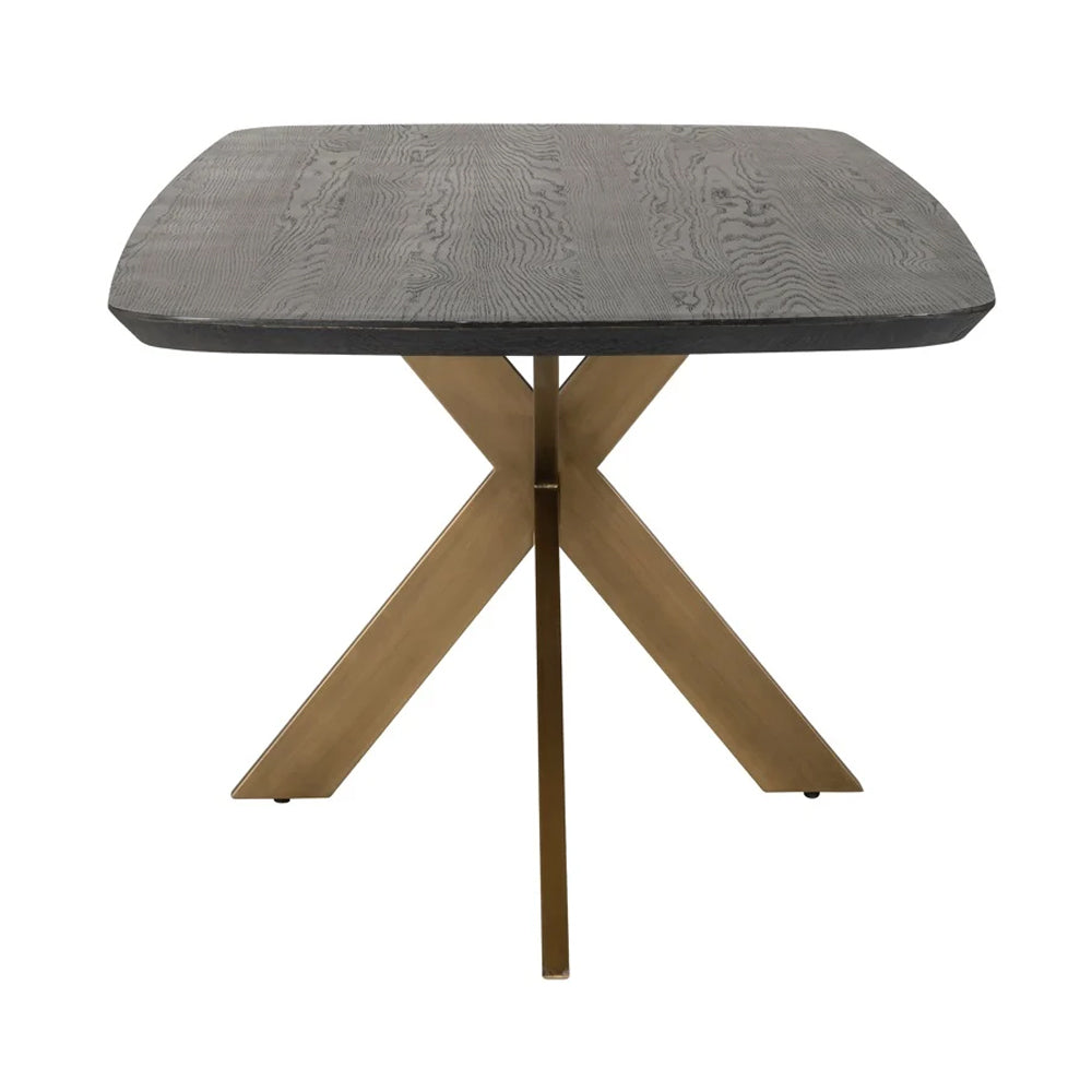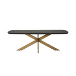 For a glamorous style that enriches with ease, look no further than the Cambon Oval Dining Table from Richmond Interiors. This beautiful piece features a smooth, oval top made from coffee-coloured oak veneer, but the highlight is definitely its warm, brassy base. An intricate display of metalwork, its base consists of two x-shaped legs which cross over for a striking effect that allows it to stand out in any setting.