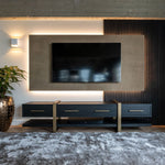 This wide unit is perfect for larger TVs whilst also providing plenty of space along the top or bottom for media players, games consoles and soundbars. It features a large central drawer with a smaller drawer on each side so you can stash away any discs or additional cables. Style and function in equal measures, the Cambon TV-Unit is everything you need to show off your treasured entertainment set-up.