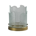 Featuring a series of wavy textured glass panels, this exquisite lamp exudes elegance and sophistication. The luxurious gold iron base adds a glamorous touch, making it a versatile addition to both classic and contemporary décor schemes. Designed for soft, ambient lighting, the Danila Hurricane Lamp transforms any room into a warm and inviting haven.