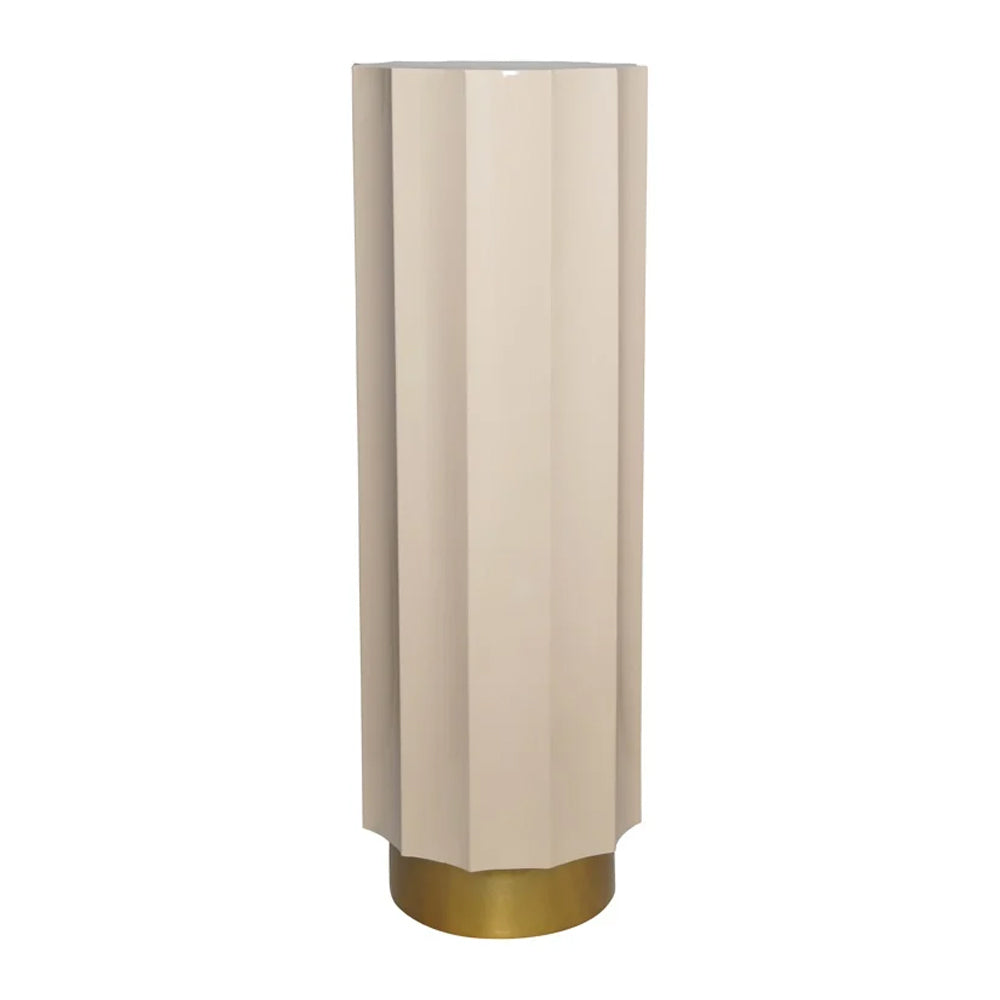 Crafted from sturdy beige iron, this striking piece features a unique fluted silhouette that adds a touch of architectural sophistication to any space. Its luxurious brass-coloured base enhances the column’s modern appeal, creating a stunning contrast with the neutral tones above.