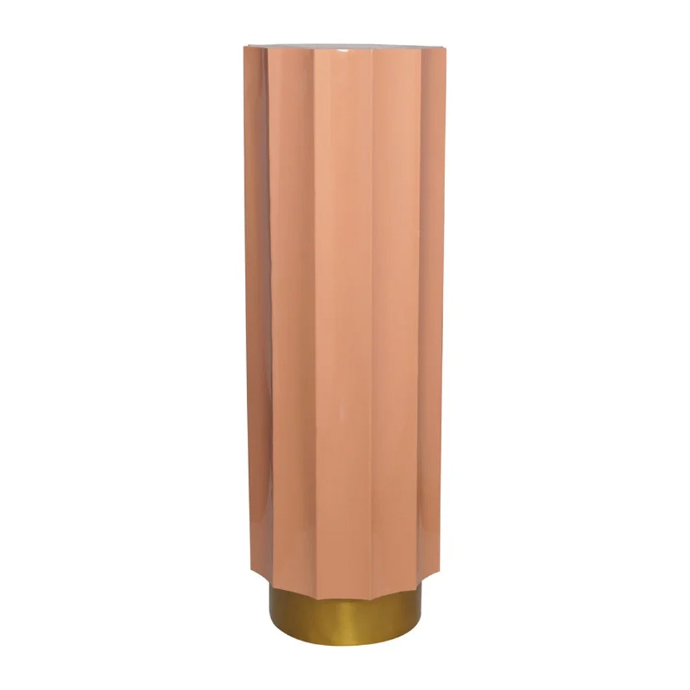 Crafted from sturdy blush pink iron, this striking piece features a unique fluted silhouette that adds a touch of architectural sophistication to any space. Its luxurious brass-coloured base enhances the column’s modern appeal, creating a stunning contrast with the pink tones above.