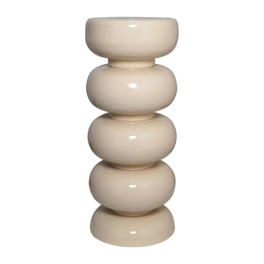 Crafted from durable iron and finished in a soft beige tone, this column features a bold, stacked form that adds a sculptural aesthetic to your room. The glossy, rounded tiers create a striking silhouette, making it the perfect accent for contemporary interiors.