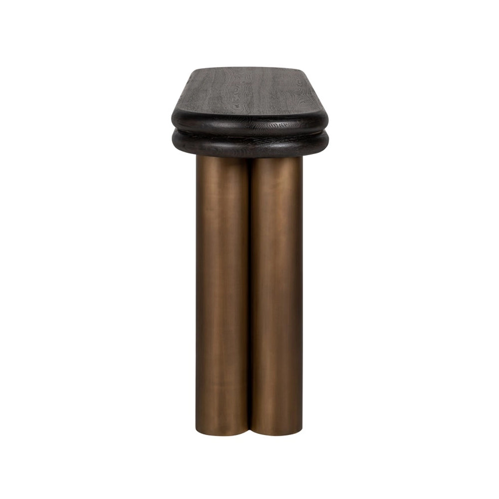 Bring a touch of refinement to your space with the Macaron Console Table from Richmond Interiors. Tall and sleek, it consists of a rich tabletop made of rustic-black oak with a trio of brushed-brass metal legs supporting each side. In your living room or a long hallway, the Macaron Console Table is the perfect place to display your favourite ornaments, flower displays, or most treasured family photographs. It even makes a handy surface for stashing your keys and wallet so you don’t forget them on your way out. Whether your design is contemporary, traditional, or anything else in between, the Macaron Console Table makes a stylish addition to space.