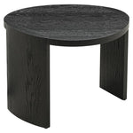 Each table in this exquisite set of two is has been crafted from oak veneer with a deep dark coffee finish and offers both style and versatility. The minimalist design features smooth, curved edges, making them perfect for modern or minimalist interiors. Use them separately to expand your surface area or nest them together for a sophisticated, layered look.
