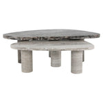 Crafted from a stunning combination of light and dark marble, these tables offer flawless versatility in both style and function. The smooth, organic shapes and cylindrical legs exude contemporary elegance, while the contrasting marble tones create a bold, natural look.