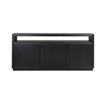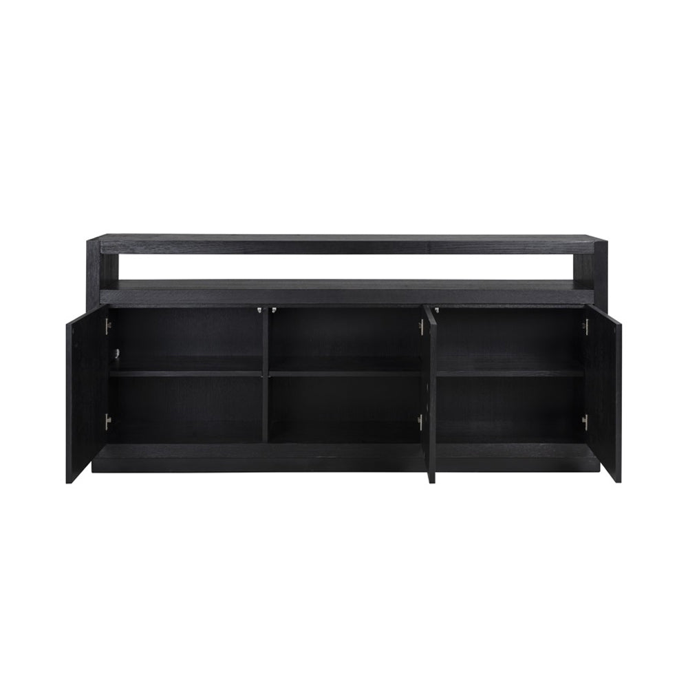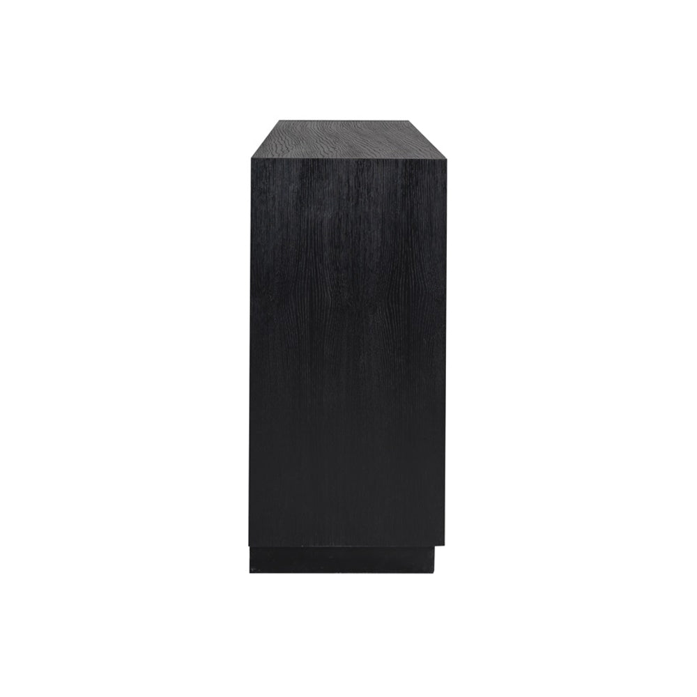 Adding an elegant finishing touch to a contemporary living room or dining room, the Oakura Sideboard impresses with its rich beauty. Crafted from black oak veneer, its sleek, minimalistic silhouette is a beautiful display of crisp, clean lines that boost the mood of your space to a whole new level. With a smooth, spacious top and lower shelf, there is plenty of space to display your ornaments and photographs whilst three doors open to reveal shelved storage to keep your room free of clutter. Impeccable style that exudes sophistication, the Oakura Side Table allows you to make the most of your space.