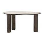 Crafted with a sleek travertine top, it offers a smooth and durable surface that blends natural elegance with modern sophistication. The trio of cylindrical wooden legs, finished in a rich dark tone, create a sturdy yet stylish foundation, making this desk as practical as it is visually striking.