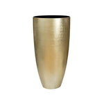 Featuring a striking textured gold finish, this metal planter makes a bold statement in any space. Its sleek, elongated design is perfect for displaying tall plants or serving as a standalone decorative accent. Whether placed in a living room, entryway, or office, it instantly enhances the space with a luxurious, contemporary feel.