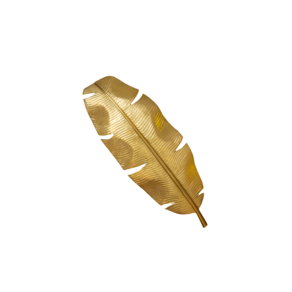 Shaped like an intricate leaf, its textured stainless steel surface and opulent brass finish impart a sense of warmth, depth and sculptural sophistication to any setting. Available in both left and right-facing versions, these lights are perfect for flanking mirrors, doorways or artwork to create a sense of balance and symmetry.