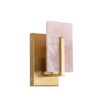 Its sleek brass-finished fixture offers an opulent gleam, instantly drawing the eye. The shade, crafted from rose pink quartz, adds an organic, textured beauty while gently diffusing the light for a warm, ambient effect.