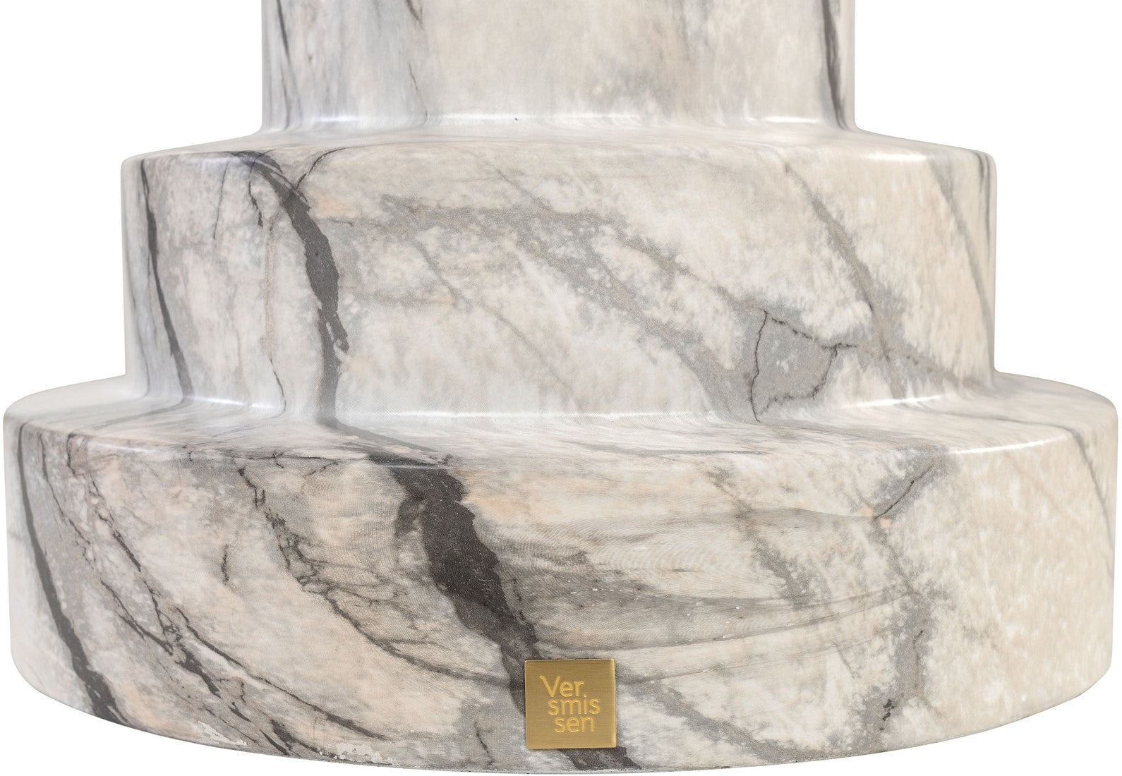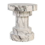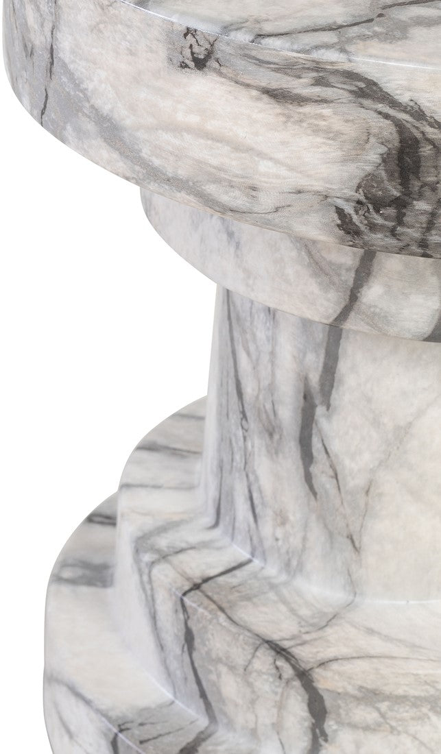 Expertly crafted from grey and white marble-effect Glassfibre Reinforced Concrete, this exquisite stool boasts an appearance akin to a carved sculpture. Its symmetrical stepped design pays homage to the grandeur of traditional Roman pillars, introducing a touch of timeless elegance to any setting.
