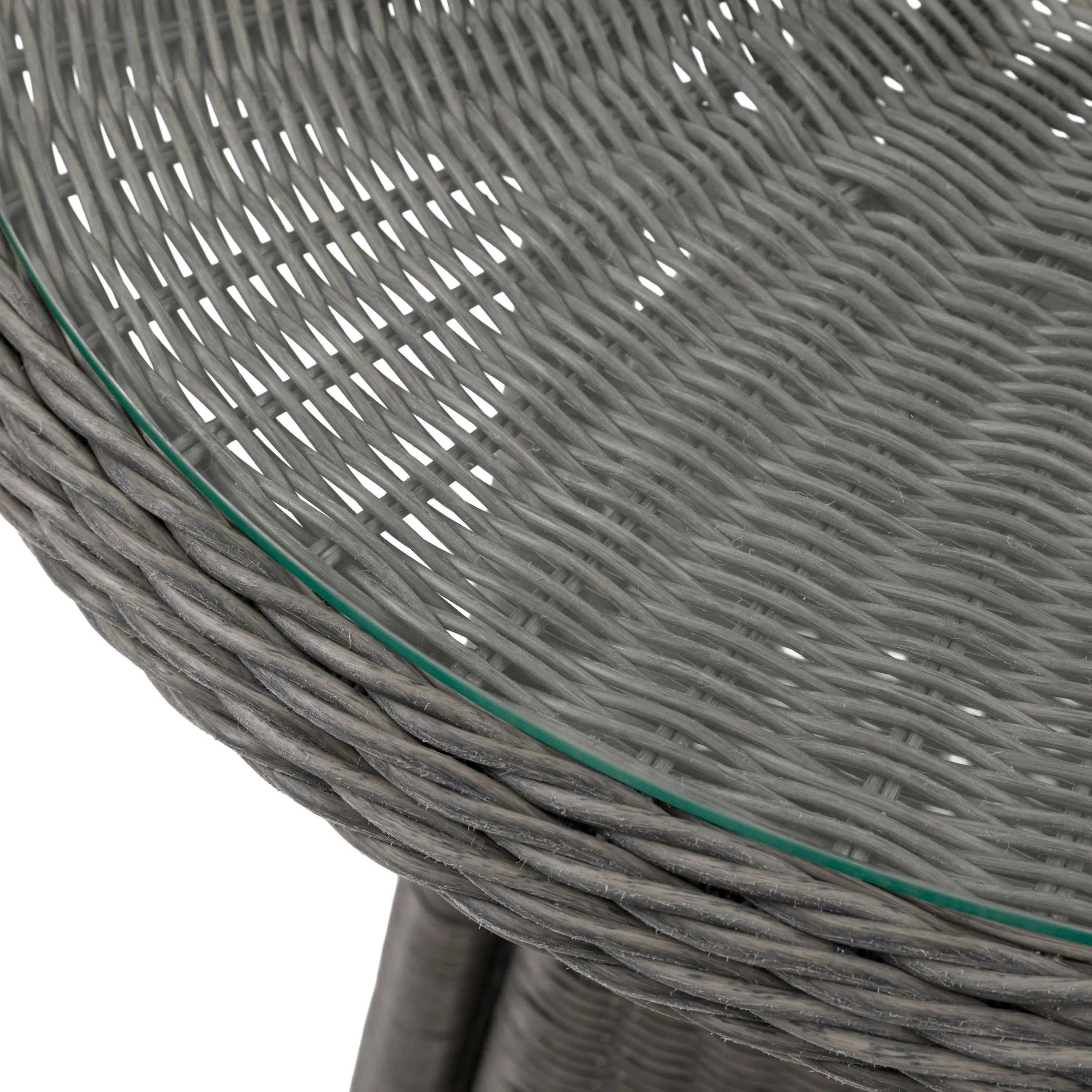 Crafted from durable PE wicker in a soft grey finish with a subtly weathered look, this stylish set includes one round table and two chairs so it's ideal for relaxed meals in the sun. The glass-topped table features a parasol opening for added convenience and a practical lower shelf for storage. Each chair is designed with gentle curves and a supportive backrest, complemented by neutral showerproof cushions for lasting comfort.