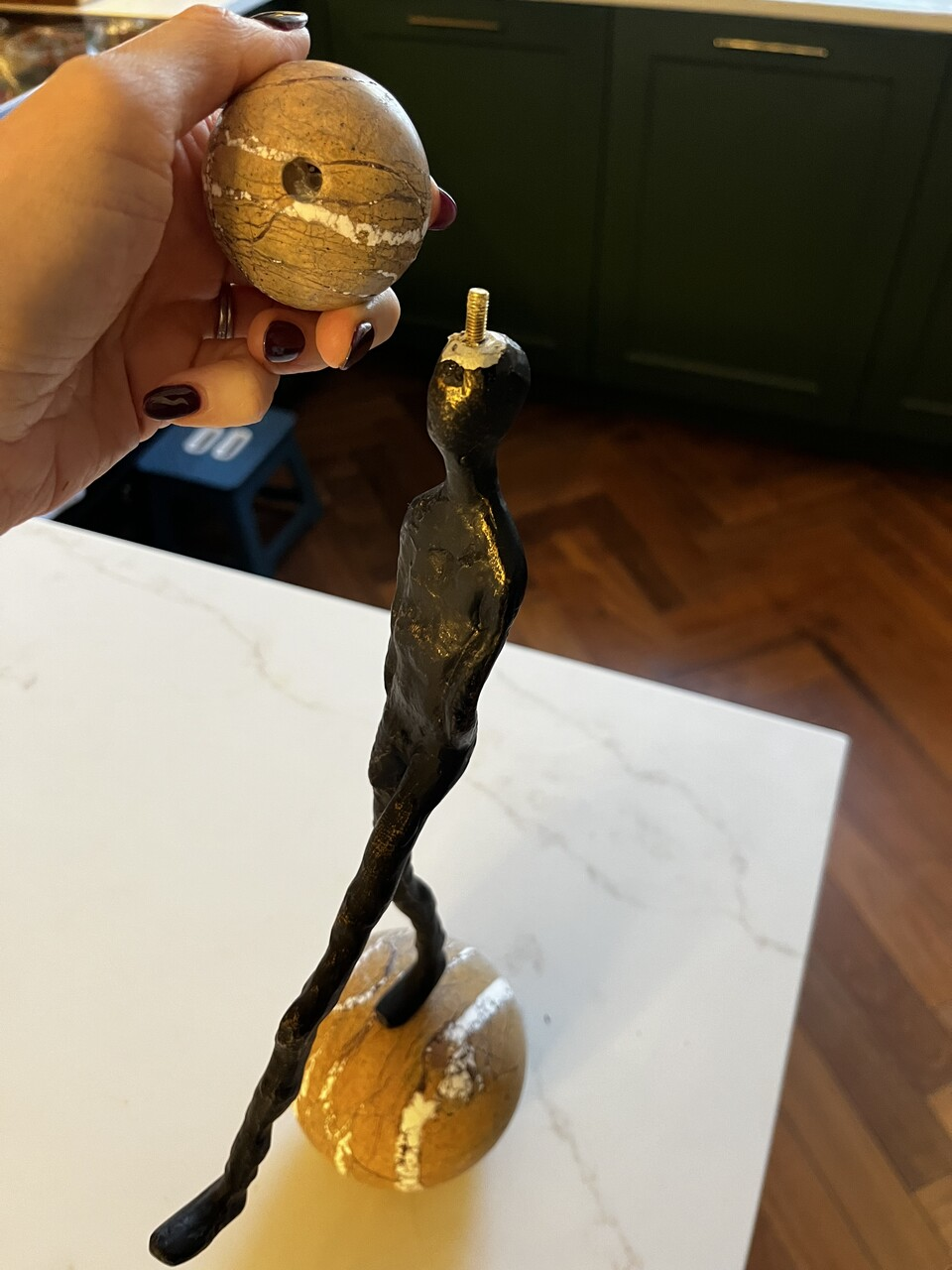 • We have one piece in stock that is missing some paint. The smaller sphere also comes off, but can be rested in place  - see images