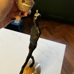 Cast in dark bronze aluminium, its slender abstract figure balances gracefully atop a polished marble sphere, creating a captivating interplay of texture, form and material. The poised, dynamic posture captures movement frozen in time, making it a striking focal point for contemporary interiors. Smooth marble contrasts elegantly with the rich bronze finish, adding tactile sophistication and visual depth.