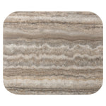 Crafted from grey faux travertine, its bold pedestal design mimics the raw beauty of natural stone while offering a refined, contemporary edge. The smooth, rounded square top rests securely on a cylindrical base, creating a sculptural silhouette that commands attention from every angle.