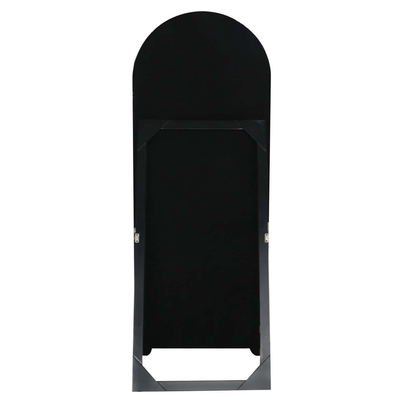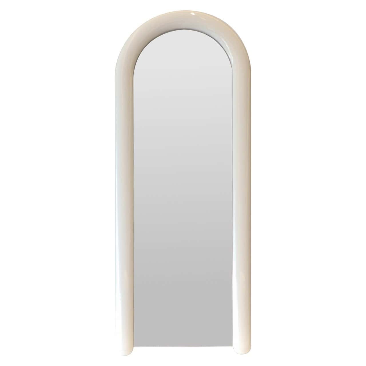 Crafted from MDF with a high-gloss coconut milk finish, its soft, creamy tone and rounded arch design create a clean yet elegant look. The full-length design and sleek black stand make it ideal for bedrooms, dressing areas, or walk-in wardrobes where it offers both style and practicality.
