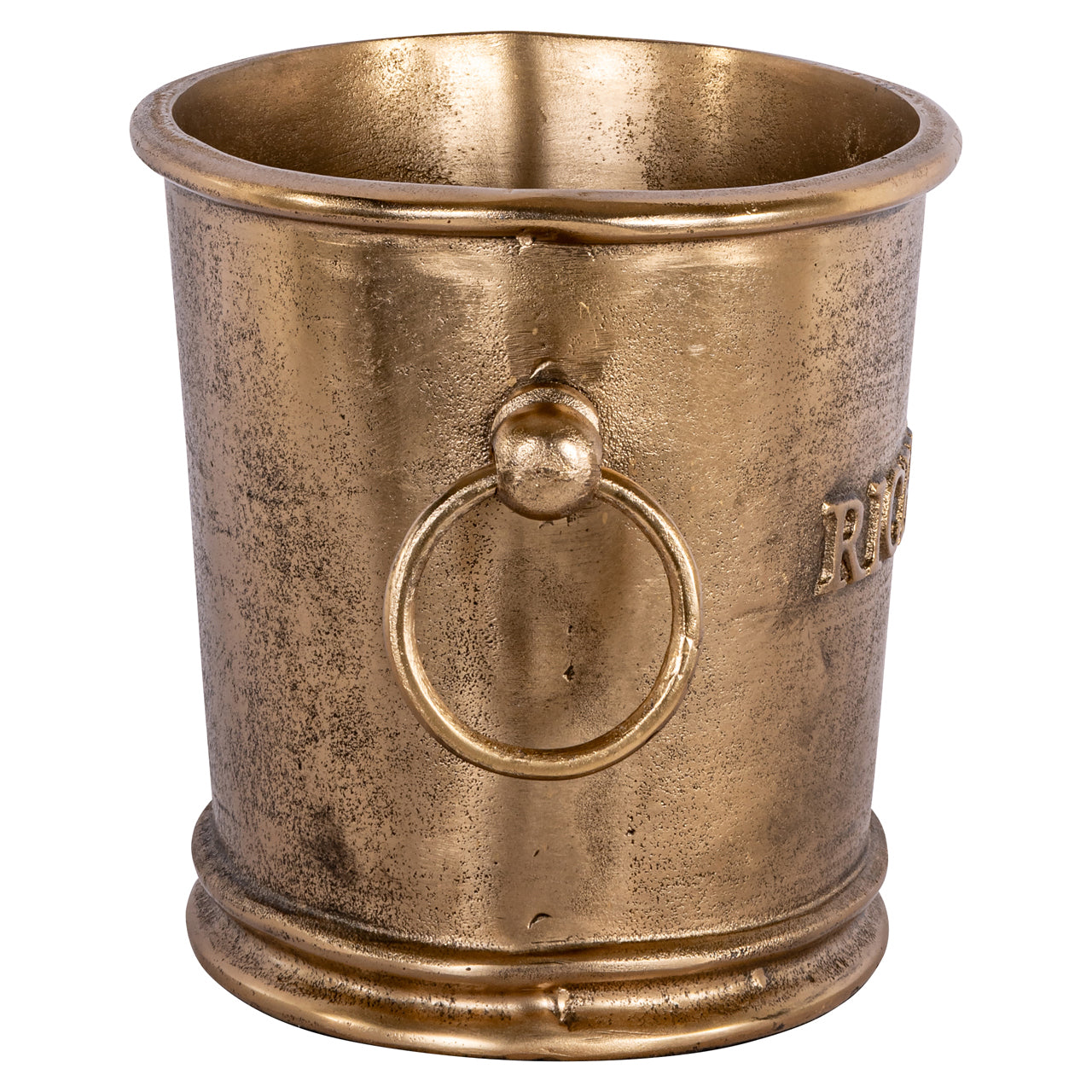 Crafted from aluminium with an antique brass finish, it combines lightweight practicality with a timeless, heritage-inspired look. The rounded silhouette and integrated ring handles make it easy to move from kitchen to table, while the wide interior provides ample space for ice to keep your bottles perfectly cool.