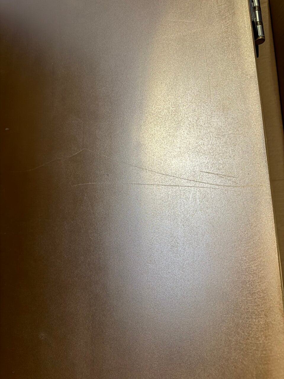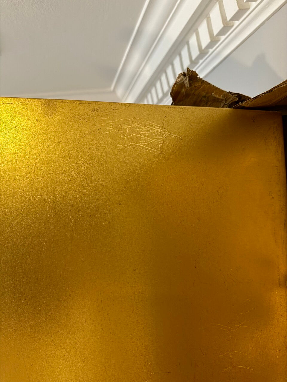 • We have one piece that incurred slight damage during shipping - please see images. They show some surface scratches to the gold finish. Some may consider this a part of the rustic/vintage appearance of the piece.