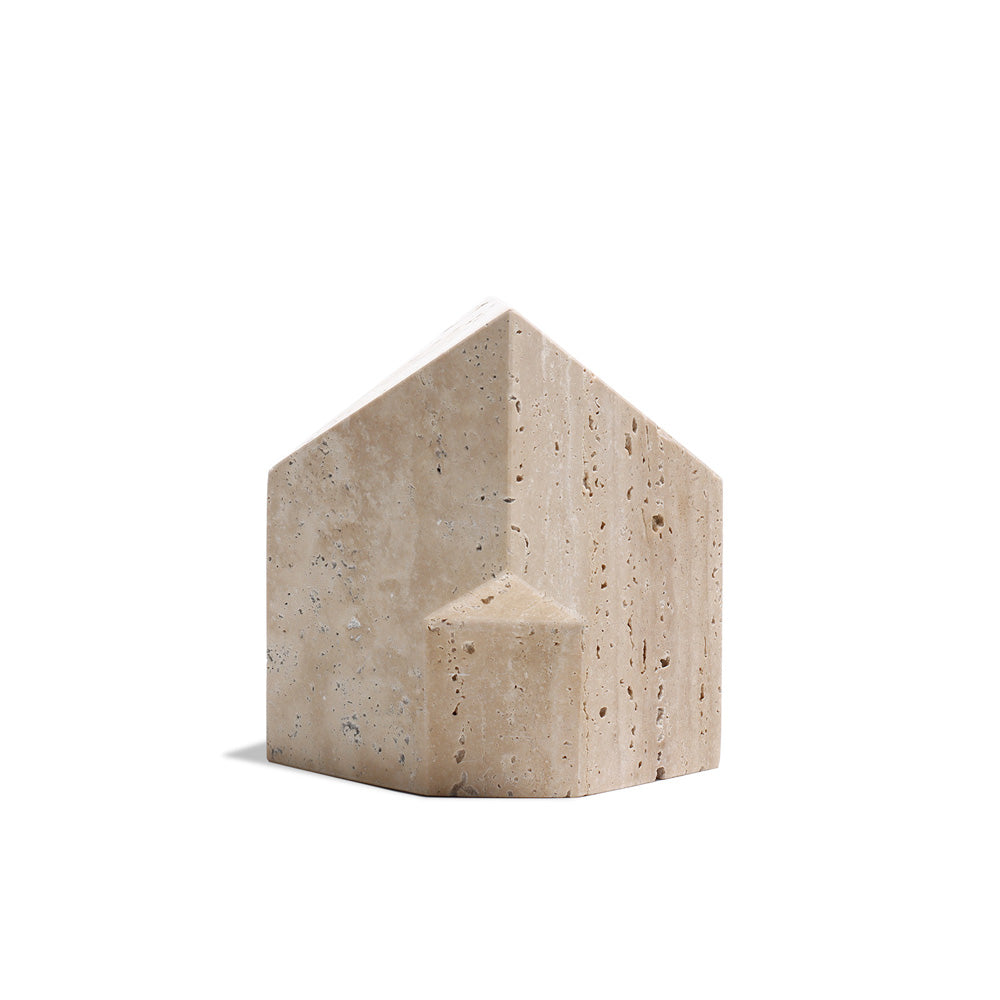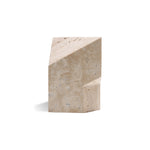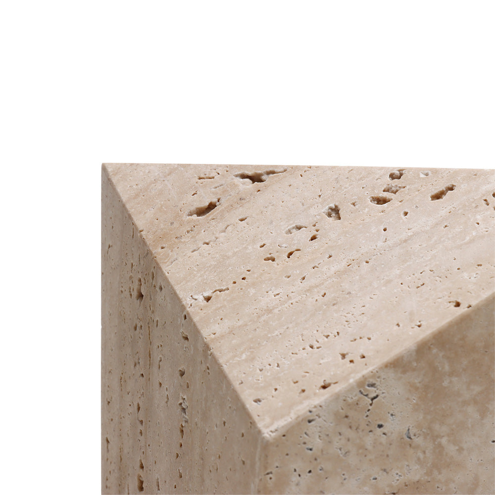 Meticulously crafted from beige travertine, this elegant piece enhances your décor with understated sophistication, while its captivating angular design forms a striking silhouette that commands attention. Each sculpture, thanks to the natural variations of marble, holds its own unique charm, imbuing your space with a bespoke aesthetic.