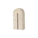 Carved from exquisite beige travertine, its elegant arch-shaped design exudes sophistication and a serene sense of balance. Bursting with sophistication, it's a piece that embodies the essence of contemporary class, perfect for enhancing the aesthetic appeal of your home.