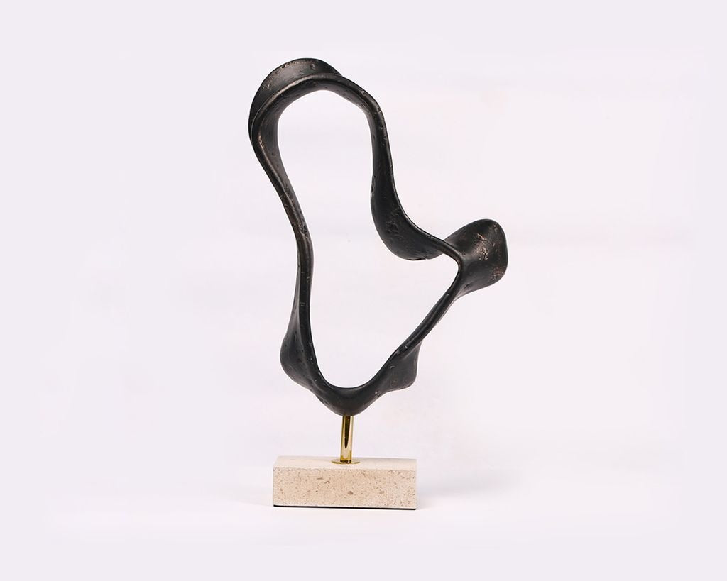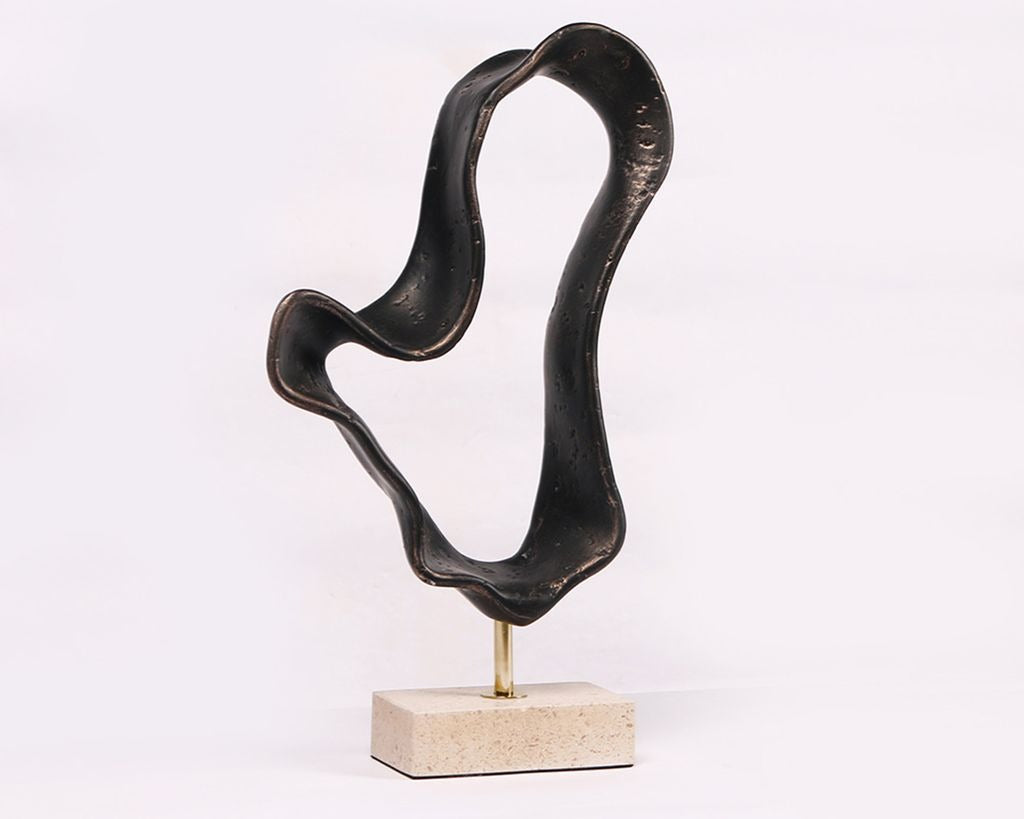 Inspired by the natural flow of water, its sweeping curves and organic profile evoke a sense of serene movement. Crafted from dark bronze‑finished resin and grounded on a creamy marble base, it exudes a harmonious blend of texture and balance. Each angle reveals depth and fluidity, making it a captivating sculptural element.