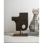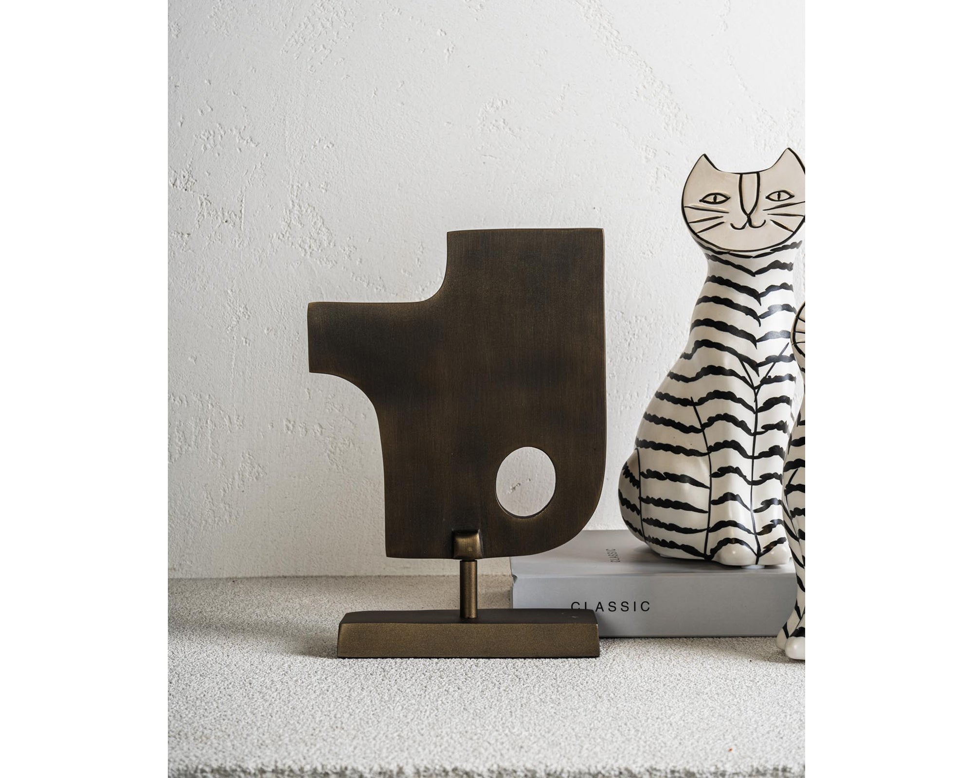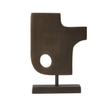 This captivating abstract sculpture has been meticulously crafted from dark bronze metal, boasting a striking silhouette marked by crisp lines, elegant curves, and artful cut-out sections. The interplay of solid form and voids creates a visually captivating narrative that will bring something unique to your space. Resting on a sturdy rectangular base, unwavering stability and a bold presence are assured.