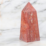 Meticulously crafted from red ochre stone, this stunning obelisk-shaped sculpture showcases a mesmerising mix of rich, earthy tones, allowing it to stand out against any backdrop. Whether as a standalone statement piece or a complement to your existing décor, it effortlessly infuses sophistication and artistic charm into your space.