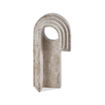 This exquisite piece, crafted from sumptuous beige travertine, echoes the charm of traditional stone carving. Its design showcases a captivating series of layered arches, lending an intriguing depth to the sculpture. Each piece is unique, with the natural material revealing subtle variations in texture and hue.