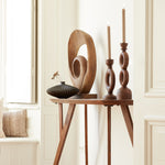 Fashioned from matt brown wood, this lovely sculpture radiates a cosy allure that accentuates its elegant, spiral design. Its commanding presence, strategically situated on your console table or sideboard, effortlessly bestows a room with pastoral charm. It is an impeccable addition to your design scheme, turning any area into a haven of timeless class.