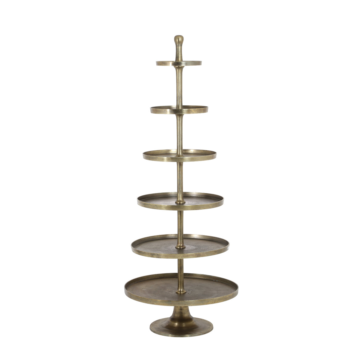 The symbol of the Hokksund Etagere Stand, is one of strength in your space. Featuring six layers each with a tray-style display area, it gives you plenty of functional use. The effect is like a great golden tree showing off its secrets. You can use it for plants and candles, trinkets and knick-knacks. Whatever best suits you. The antique bronze gives a stunning shine, which improves any space. Add to your home décor with a showstopper that makes an impact.