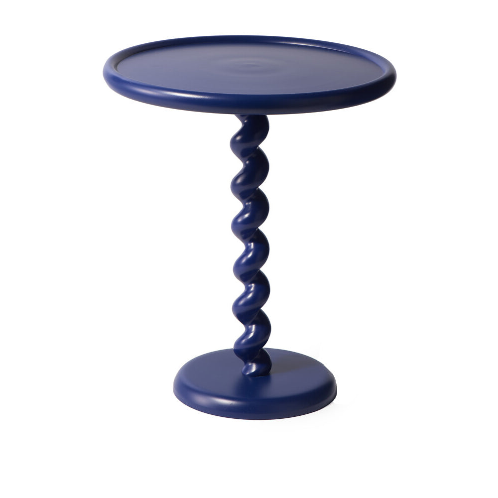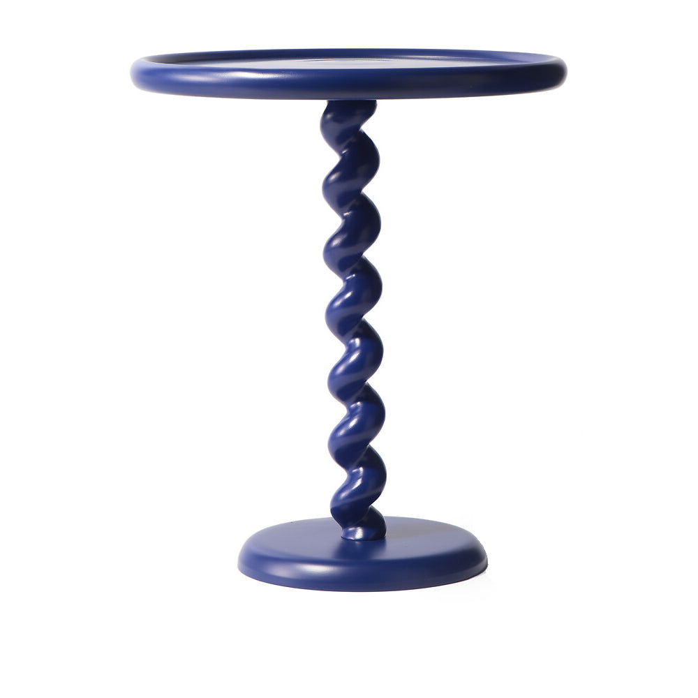 The Twister Side Table from Pols Potten is the perfect way to inject an element of fun into your space. Made from dark blue powder-coated cast aluminium, this stylish side table features a striking series of twists which connect its rounded base and tabletop with an eccentric flair. Bold and quirky, it creates a dramatic vision in any space, complementing and enriching any pre-existing design scheme, be it modern or deco. The result is equally impressive whether you introduce it to your living room, bedroom, or conservatory. A whimsical choice for those of a playful disposition.