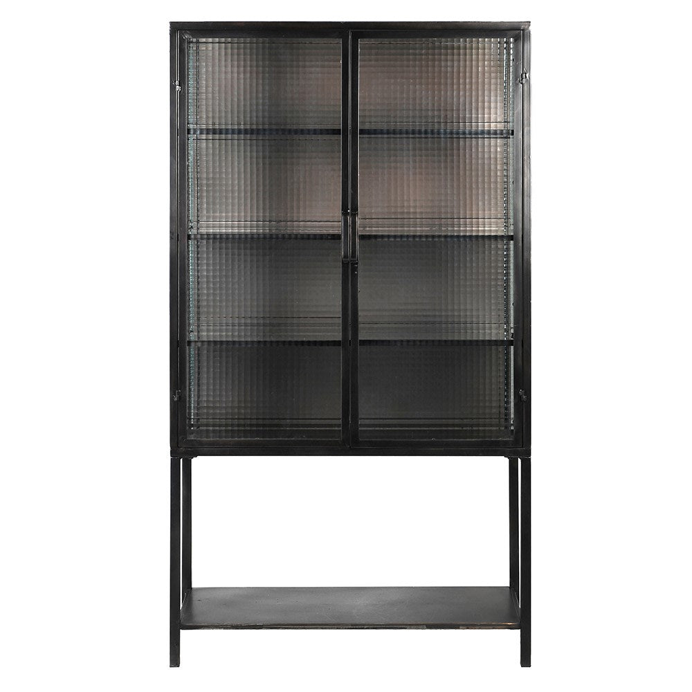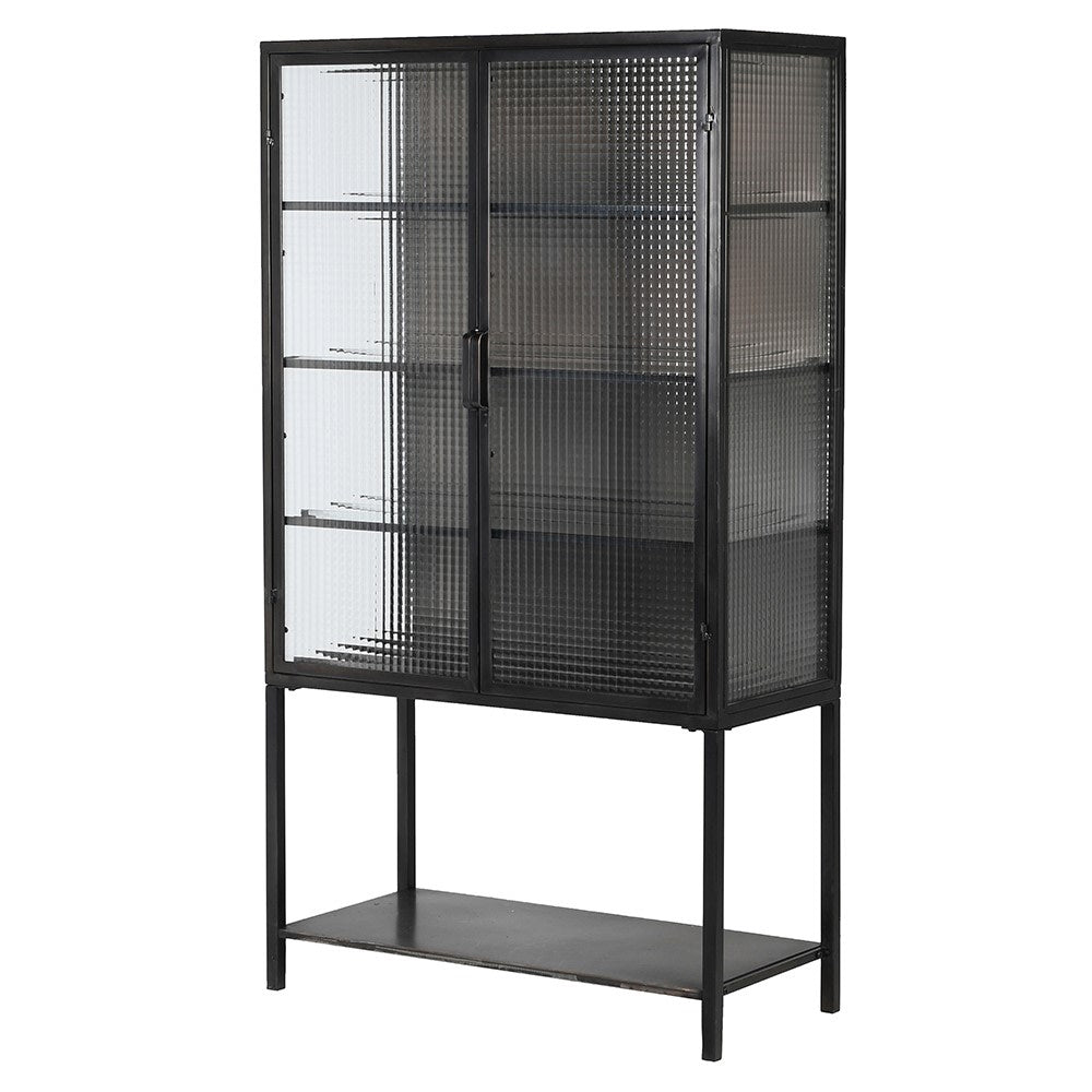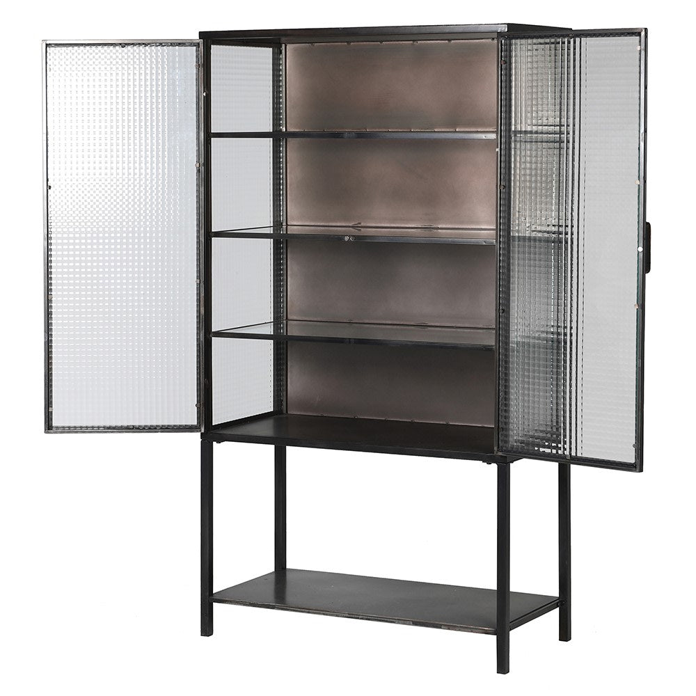 This tall iron cabinet benefits from an abundance of storage. Behind two large, textured glass doors, there are four spacious interior shelves to fill however you choose. If that is not enough, there is also a shelf at the bottom of the piece which can be used to display decorative pieces. If you would rather make more practical use of this additional space, you could even pair with some stylish storage boxes.