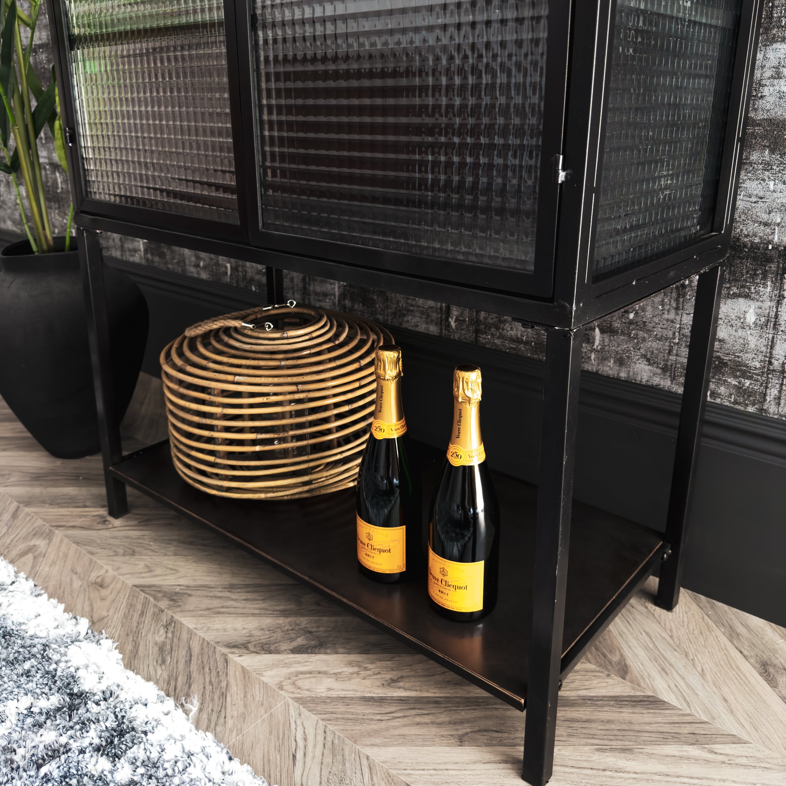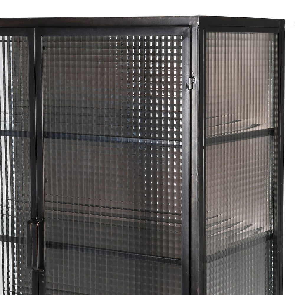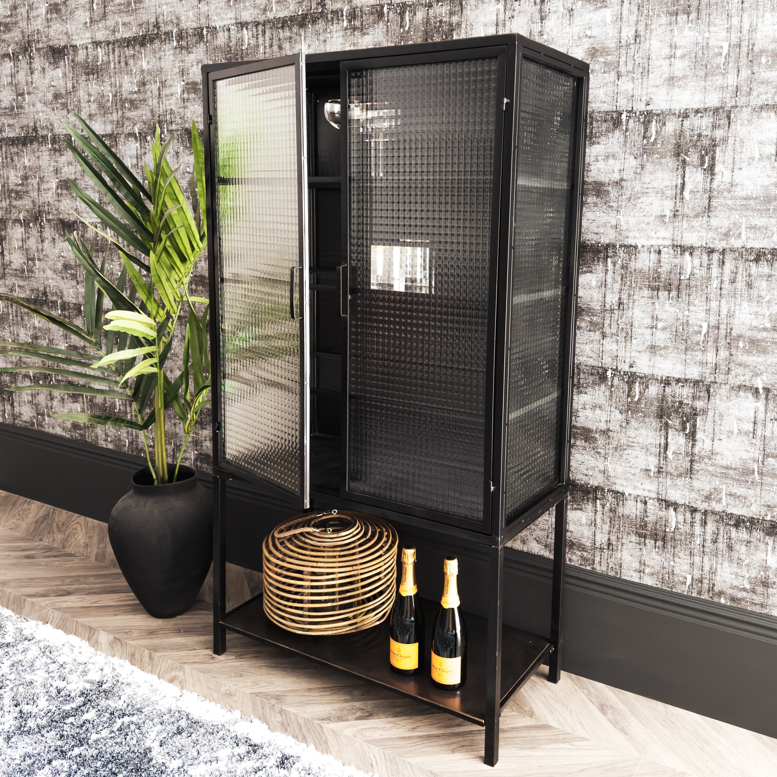 This tall iron cabinet benefits from an abundance of storage. Behind two large, textured glass doors, there are four spacious interior shelves to fill however you choose. If that is not enough, there is also a shelf at the bottom of the piece which can be used to display decorative pieces. If you would rather make more practical use of this additional space, you could even pair with some stylish storage boxes.