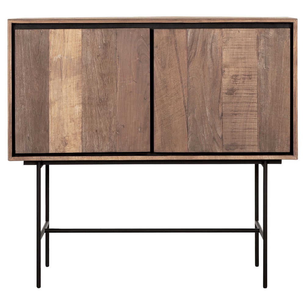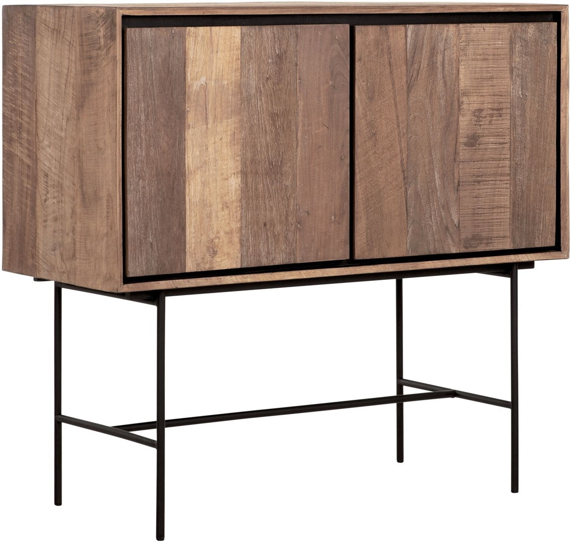 Resting on four sleek metal legs, this sideboard radiates warmth and sophistication with its recycled teakwood construction, beautifully finished to showcase the wood's natural allure. Modern black accents provide a contemporary contrast, enhancing its organic charm with a touch of modernity. Featuring two doors, it delivers ample storage in a refined silhouette, ensuring your essentials are stored in style.