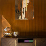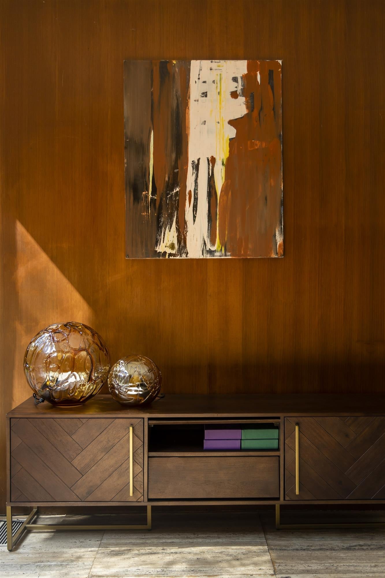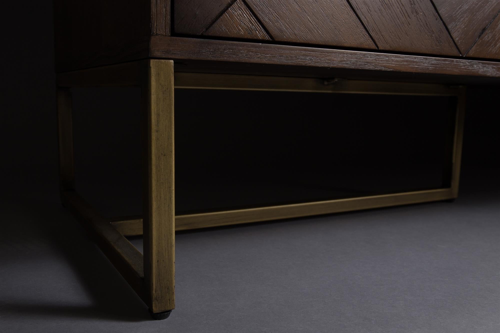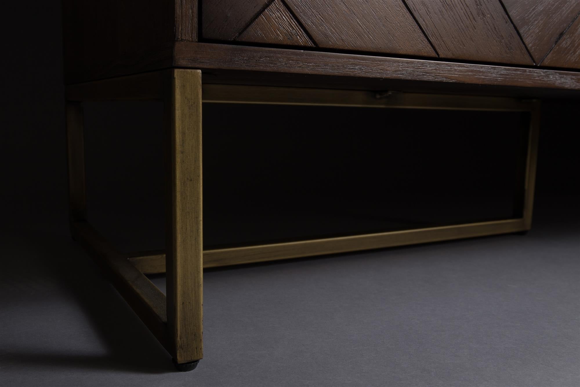 With its distinctive herringbone panels and sleek brass frame, the Class Low Sideboard from Dutchbone makes a bold yet refined design statement in any space.