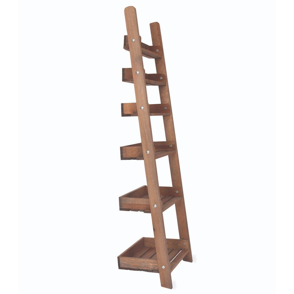 Ideal for both indoor and outdoor settings, this piece is expertly crafted from natural spruce wood and finished with a light grey water stain, enhancing its timeless appeal. The unique ladder-inspired design features shelves of increasing depth, perfect for displaying a diverse array of items. For utmost convenience, the shelves pivot and secure into place, ensuring easy repositioning.