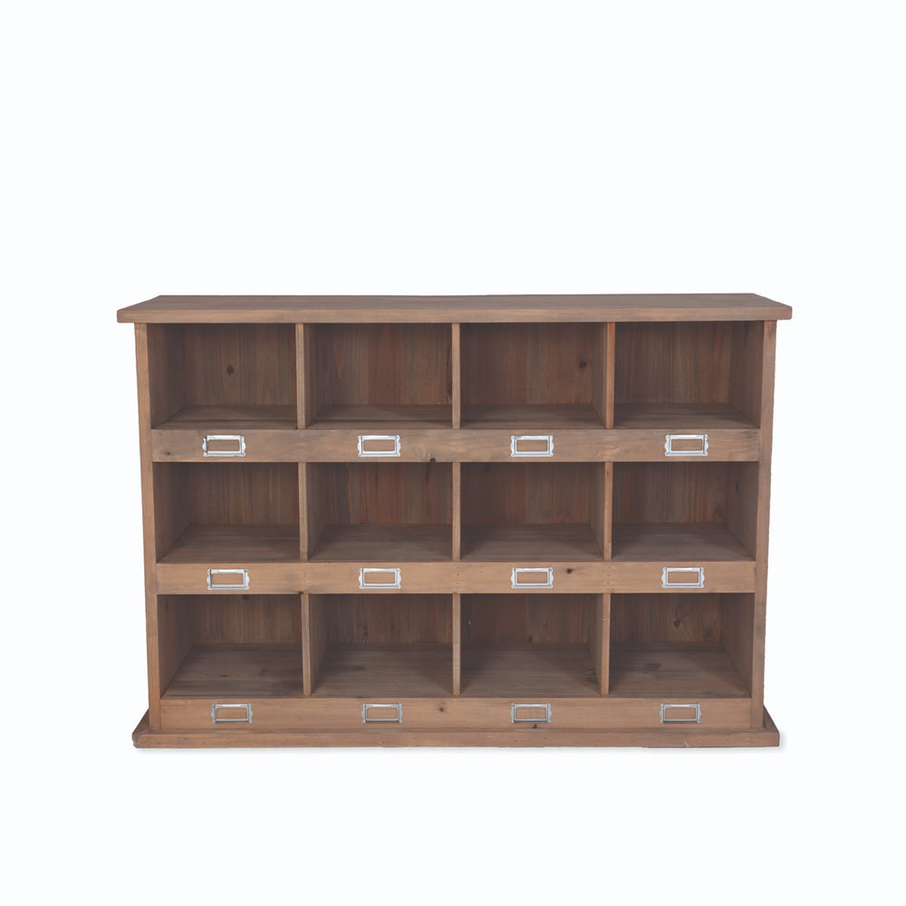 Crafted from spruce wood with a natural finish for a rustic aesthetic, this stylish unit features twelve compartments for shoe storage, each with a metal card holder for easy organisation where you can allocate spaces to family members.