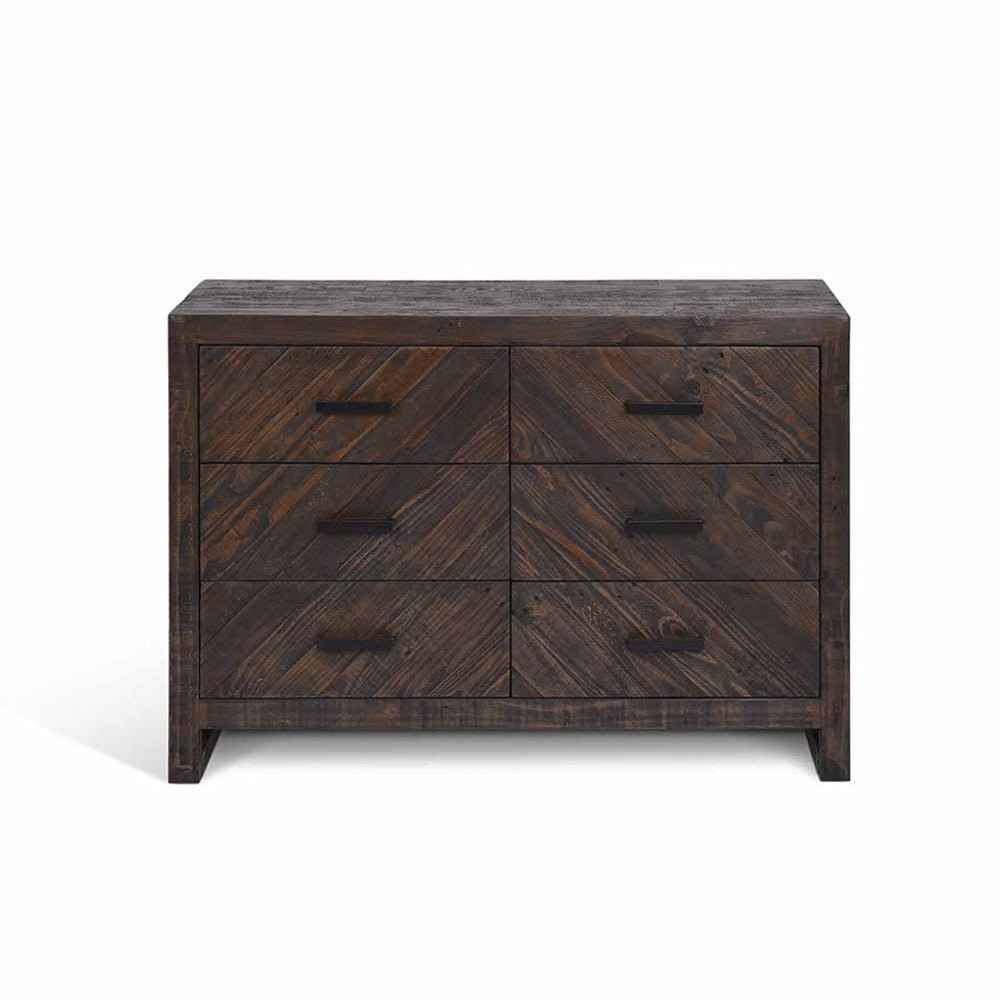 Crafted from reclaimed pine, this piece features a captivating chevron pattern that mirrors the signature style of the range. Its antique brown finish highlights the wood’s intricate grain, creating a visually striking effect. It complements the other items in the Fawley range harmoniously for a unified look but also stands proudly on its own and with six spacious drawers, it offers ample storage to keep your surroundings organised.