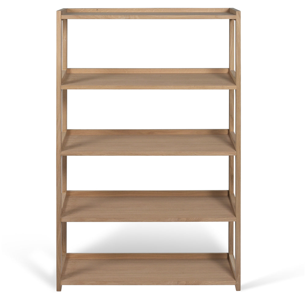 Minimalist in design, it is crafted from solid oak with a subtle natural finish that highlights the beauty of the grain while radiating warmth. Sleek and durable, this versatile piece fits effortlessly into a wide range of design schemes. Including the top, it features five shelves for books, ornaments, and photographs.