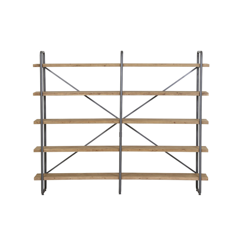 Its exposed metal frame features x-shaped support, promising durable stability and with five wooden shelves, there is ample space to showcase your ornaments, photographs, or books. Whether placed in a living room, bedroom, or office, it stands as a testament to sleek, industrial design.