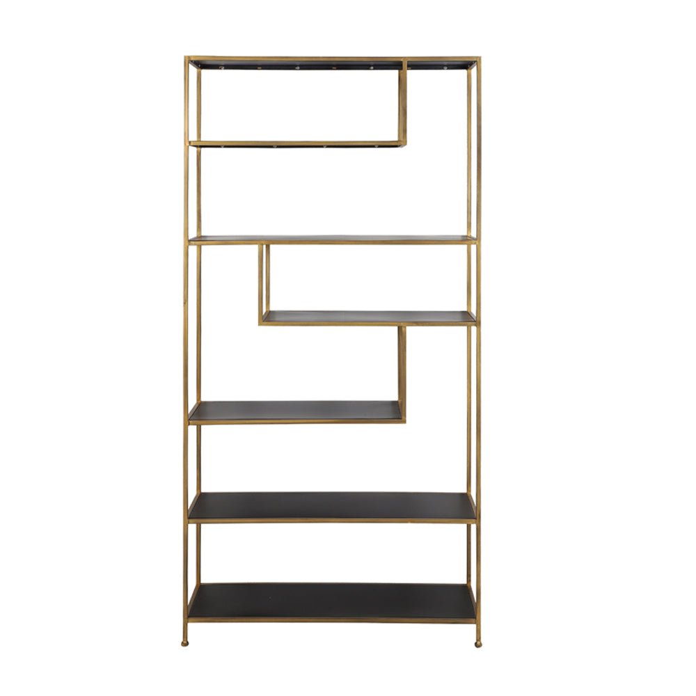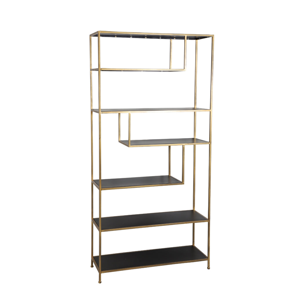 The Ylaya Cabinet gives an edge of polished style to any space. The geometric angular shelves vary from side to side giving the piece an intriguing edge. The stunning antique gold metal frame has an impressive look. Its glossy black shelves add an air of pure refinement. Give it a central location in your room and display your favourite items. From its chic and ornate edge, you can appreciate its radiance. The ultimate in elegance.